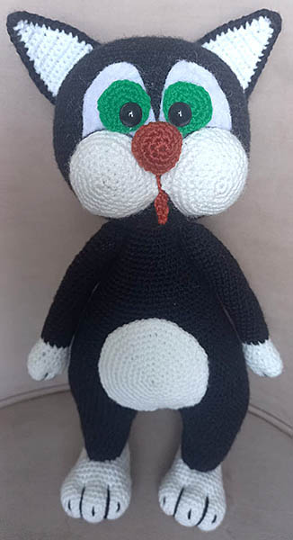 Вязаный черный кот будет радовать детей и взрослых, вид у него хулиганистый, но забот вам не прибавит. Связан из акриловых ниток, наполнитель синтешар, он же холлофайбер, которым наполняют подушки, не вызывает аллергии. При стирке не теряет форму. Авторская ручная работа.