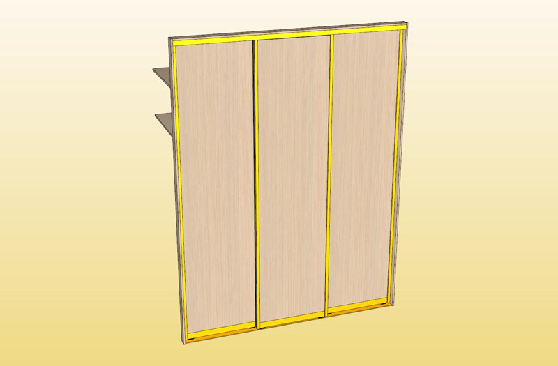 Шкаф-купе встроенный в кладовке от стены до стены, без задней стенки, без боковых панелей, без крыши, без пола.